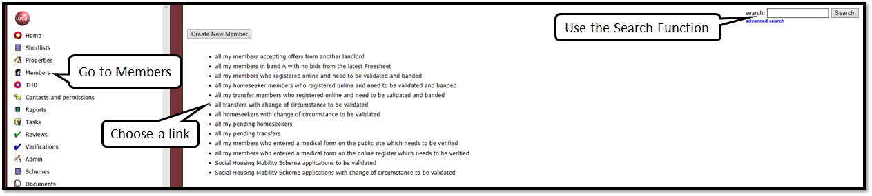 From the main Home page, you can drill down to a list of Members that you want to work with.