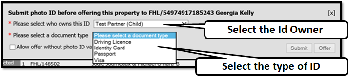 When you click on the offer button a pop up will display asking the officer to select the household member and type of ID.