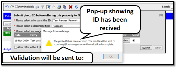 Officers can click the link in the email to return to the shortlist to either offer the property or upload another photo ID from the same household.