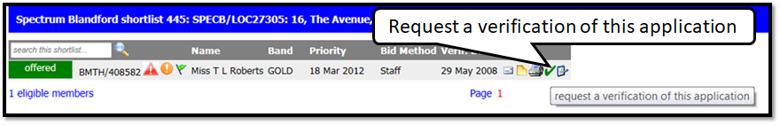 When the shortlist refreshes the green tick is now shaded grey and if you hover over the tick the verification message will display – Verification request sent to Local Authority property nominations with a date.
