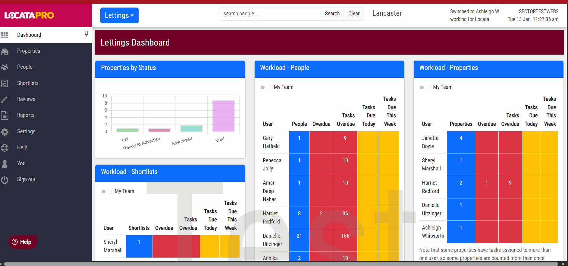 The search bar will default to search for people or applications whilst in the people pages and on the main dashboard. Likewise, it searches for properties whilst in the property pages and it searches for shortlists in the shortlist pages (as shown below). For hints and tips for making best use of the search functionality, click here.