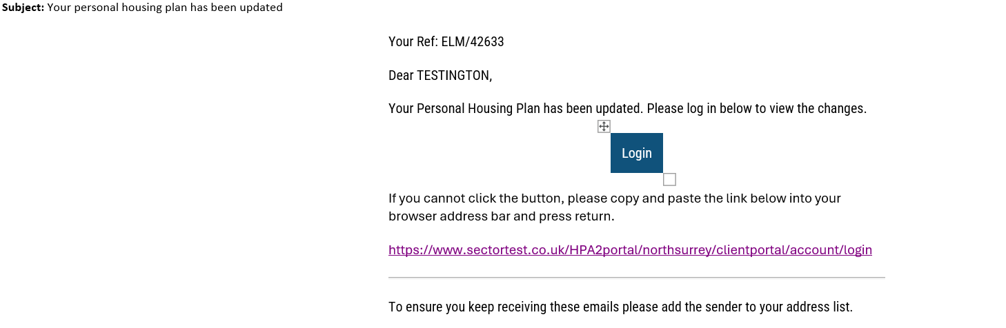 The system will automatically send an email to the customer, advising that their Personal Housing Plan has been updated.