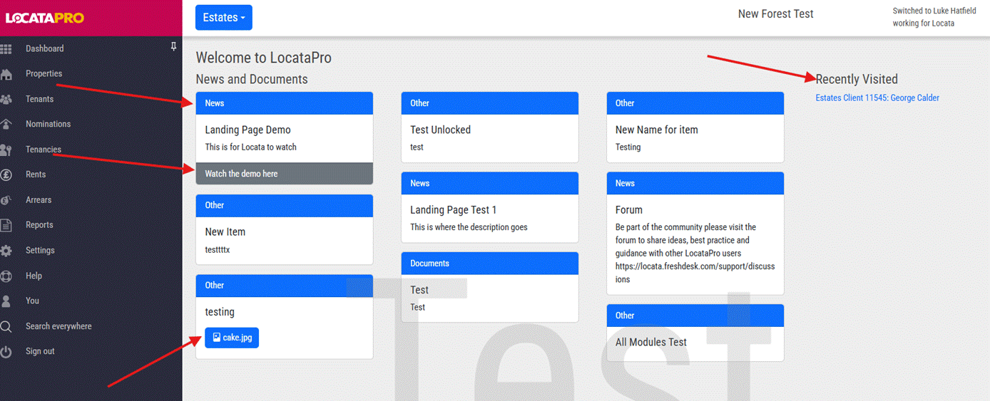 This is a quick guide to the new shared landing page you will see when logging into LocataPro modules, including how to navigate it, manage content, and customise your default view.
