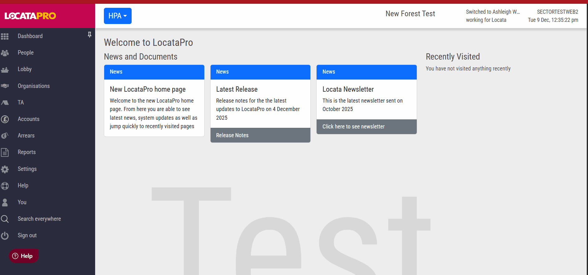 Locata has introduced a new shared landing page that appears immediately after you log into the system. This replaces the automatic load of the Dashboard and provides a clearer, more efficient starting point for all users.