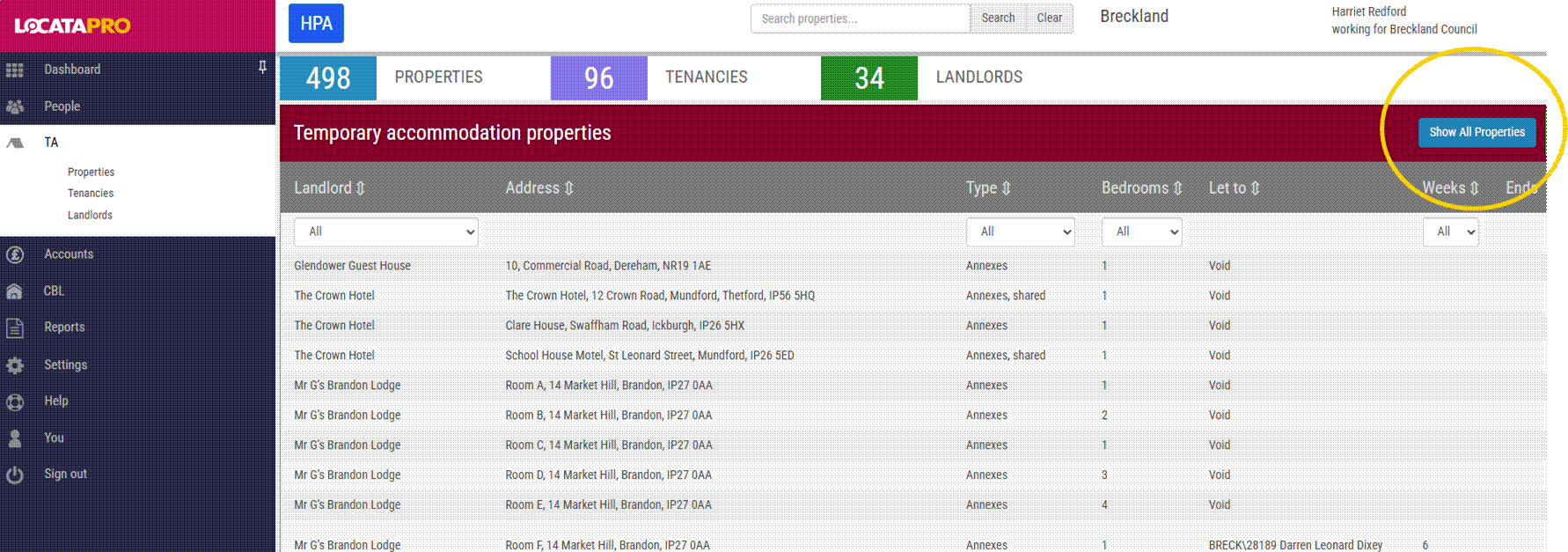This article includes how to show deleted Temporary Accommodation (TA) properties and reinstate them if they have been removed in error.