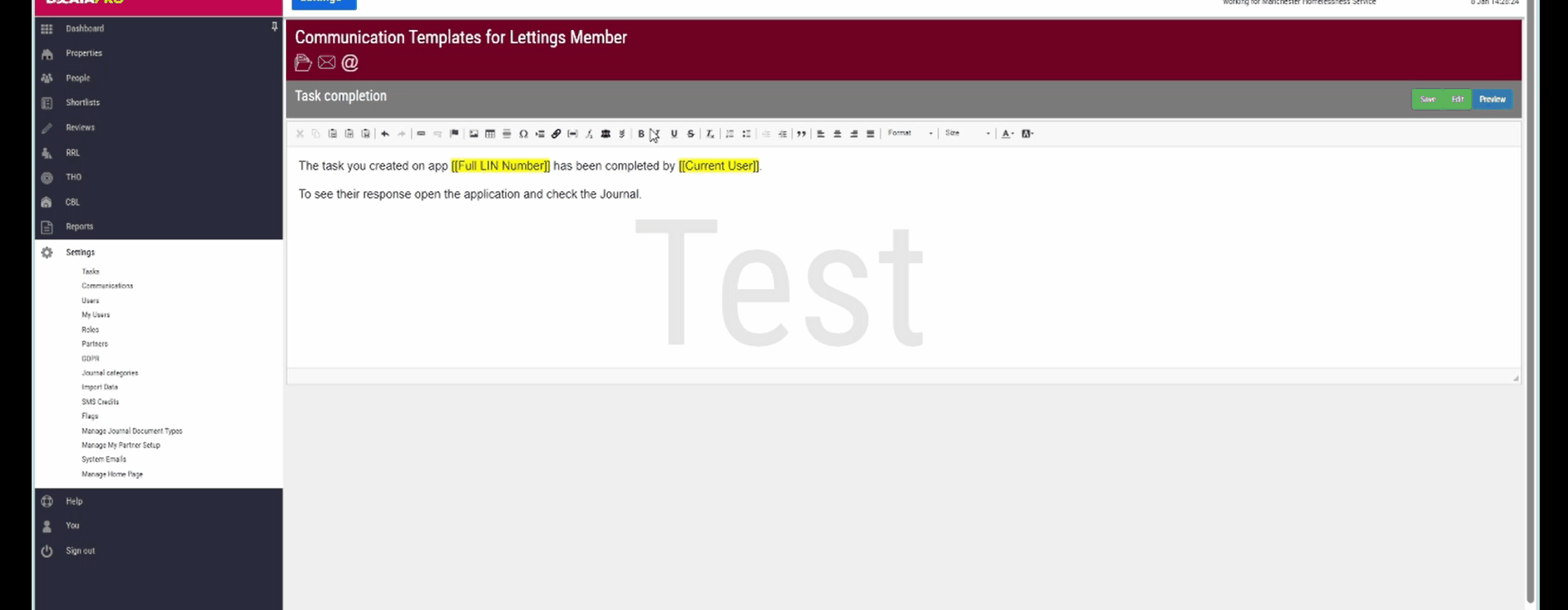 Before task completion emails can be sent, an email template must be created and correctly configured.