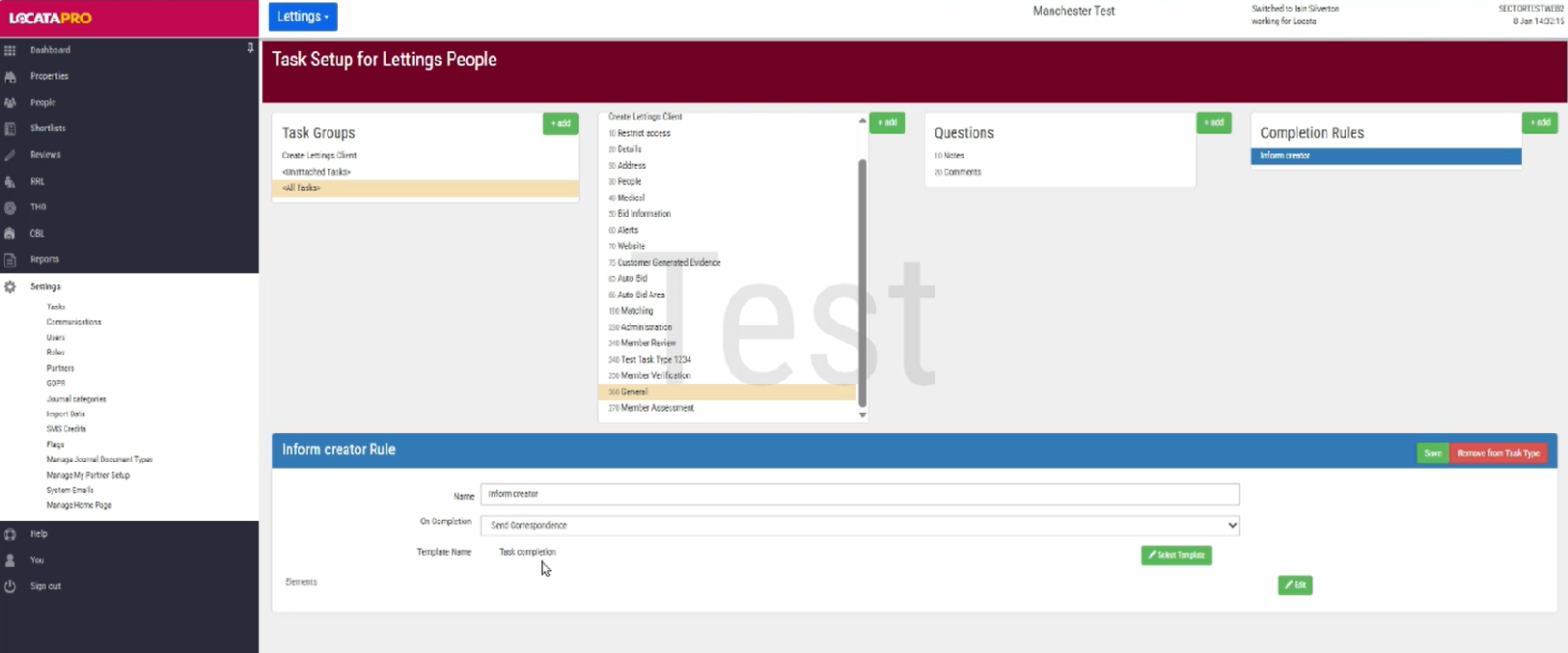 In Locata, an email is automatically sent to the user who originally created a task when the task is completed by an assigned user, on the condition it has been set up correctly.