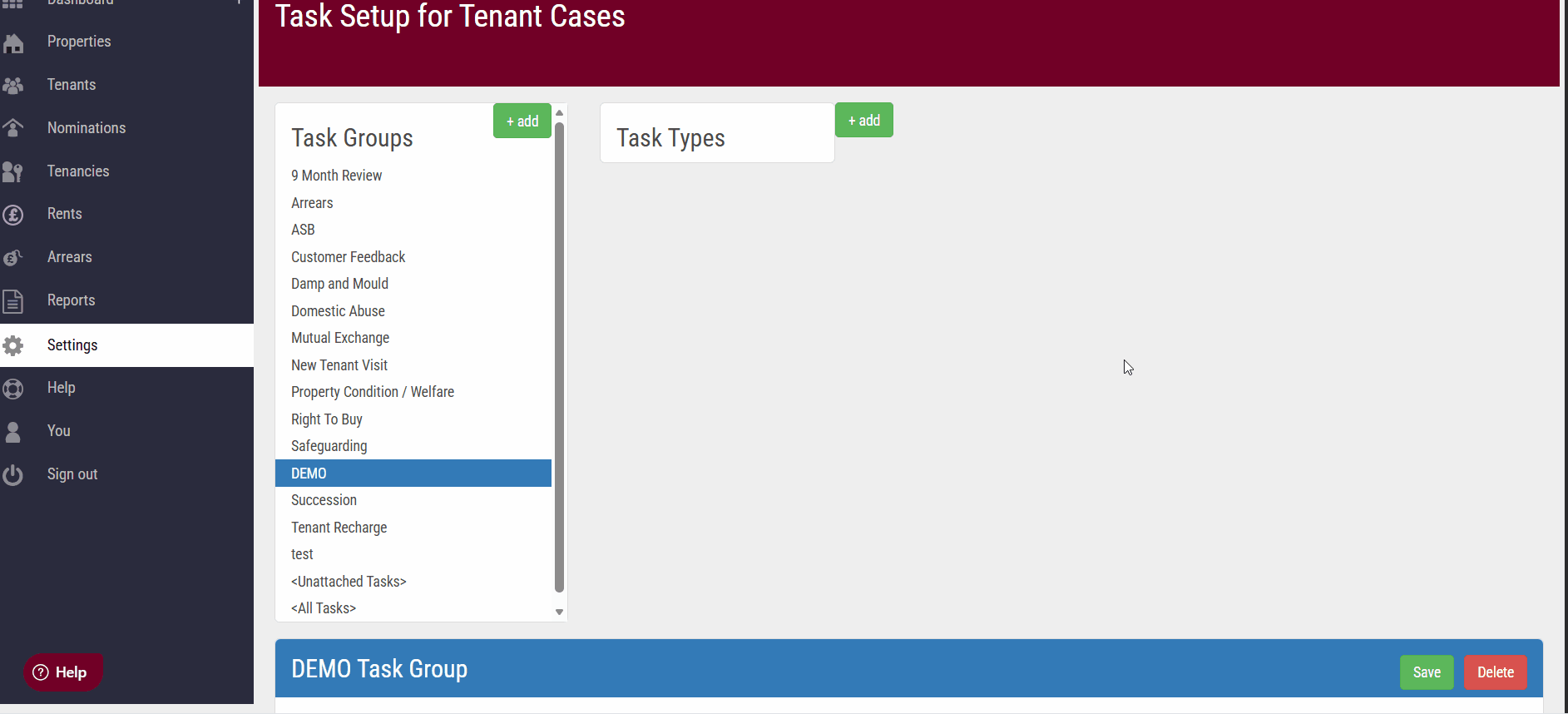In Task Types, click the green + Add button.