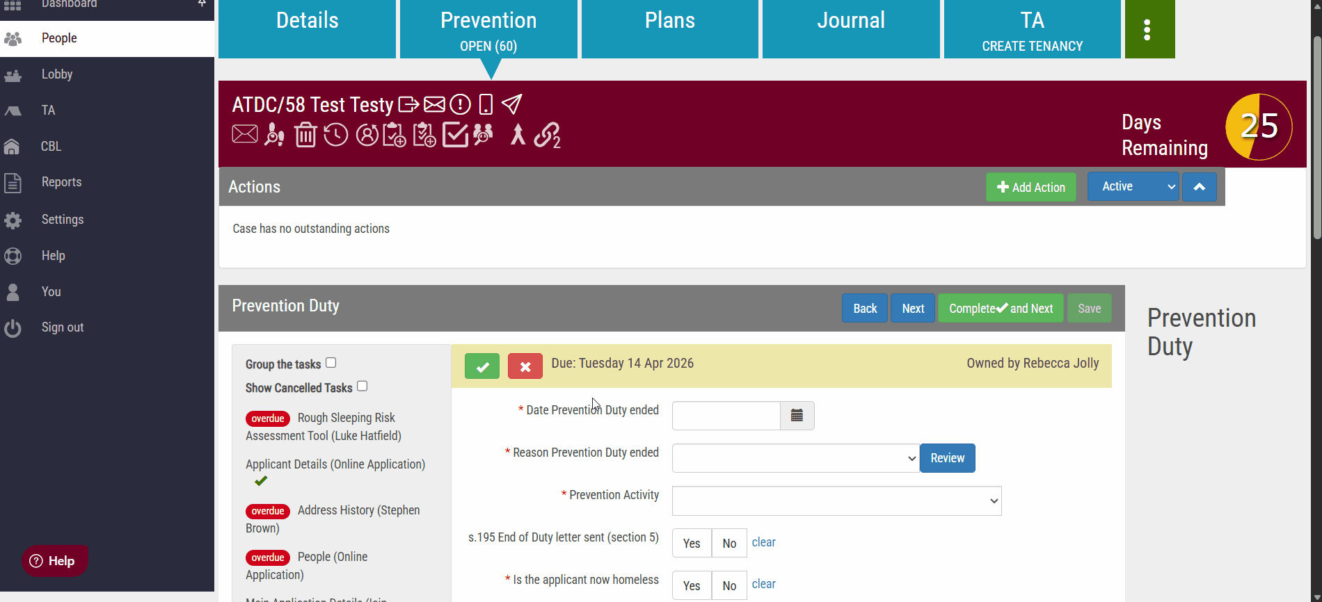 This article will explain the 56 day countdown when a case has an open Prevention or Relief Duty, and how to amend the due date if required.