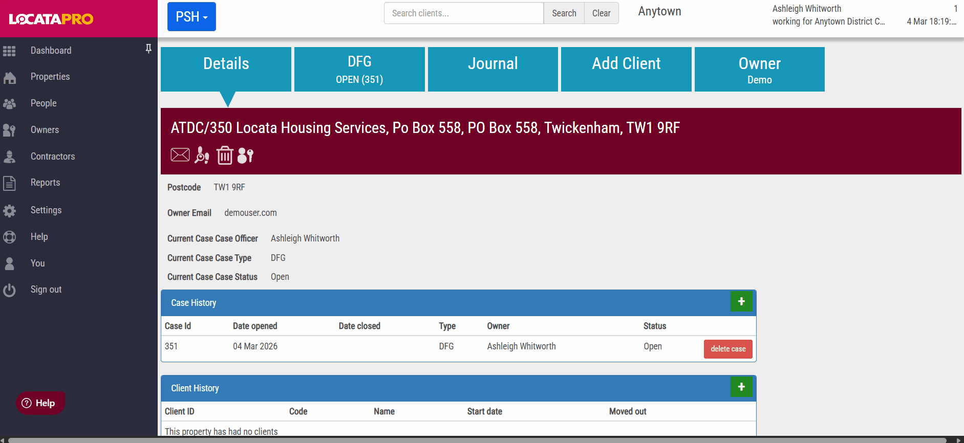 - If they're already on the PSH module or are a landlord for Temporary Accommodation on the HPA2 module (Homelessness Prevention and Advice), you can choose them from the PSH owner or TA landlord dropdowns